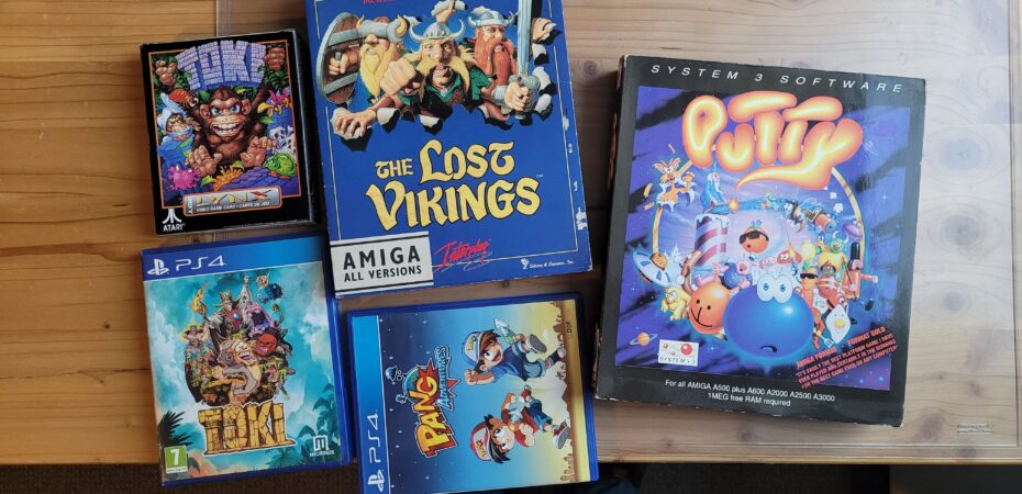 Although I focus my games collection on point-and-click adventure games, crpgs, early computer racing/pinball/rts games, I do have a few physical releases of my favorite platform and action games in my collection. Those include copies of The Lost Vikings and Putty for the Amiga and Toki for the Atari Lynx. I would love a copy for the Amiga, but they’re so expensive and I played it more on the Lynx anyway. Other favorites of mine are Pang!, P.P. Hammer and Nebulus 2. But these are even more expensive. I settled for a copy of Pang! for the PS4, but it’s not the same. I keep telling myself that it’s a virtue to focus your collection and that helps a bit to not spend great heaps of money on those games.